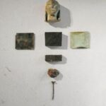 An eikon is a portrait of a holy figure used as a devotional image, first of all in eastern orthodox churches. They are a figurative and essential connection between the believer and God. Klinge combines the most important Christian symbol, the cross, with the stress on the portrait which determines the eikon. With the small rectangular plates he reminds to iconostasis in orthodox churches but by using no further depiction he casts doubt on this iconolatry.
