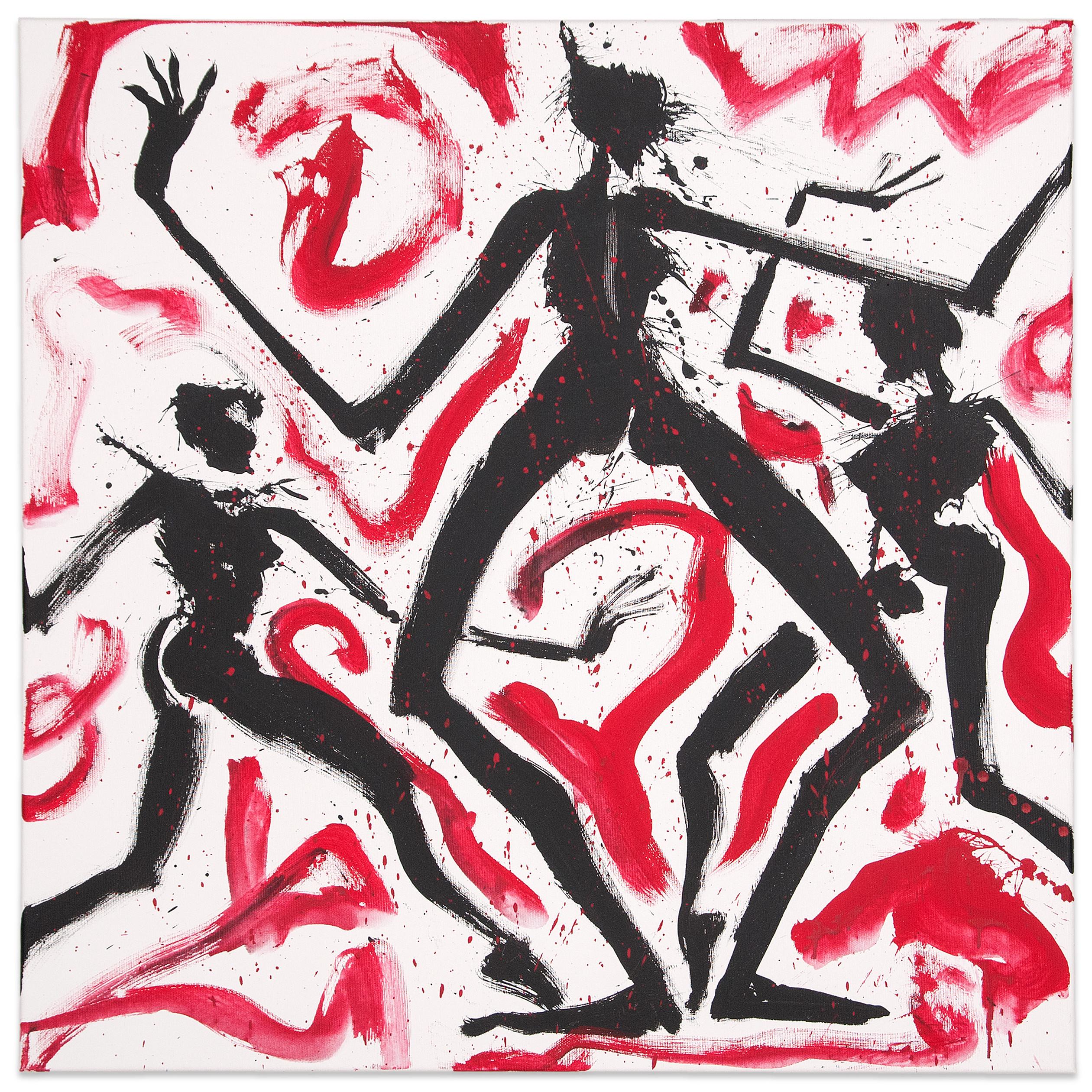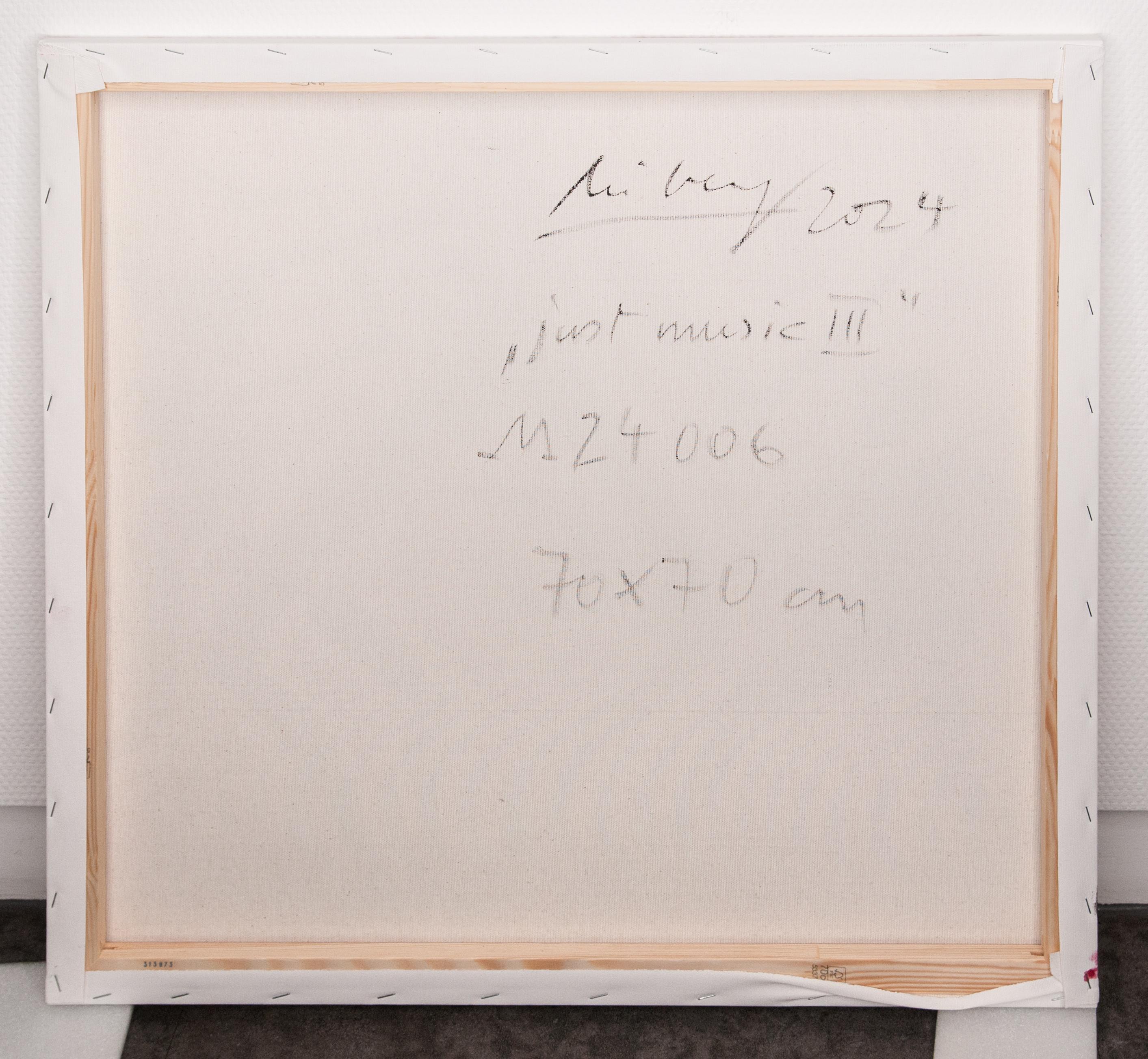Helge Leiberg ist ein deutscher, multimedialer Künstler, der für seine dynamischen Darstellungen von Bewegung und Musik bekannt ist. Sein Werk „just music III“ ist eine lebendige Malerei, die drei tanzende Figuren bestehend aus fließenden, expressiven Linien zeigt. Die Figuren scheinen in einem Zustand völliger Hingabe zur Musik zu sein, ihre Körper bewegen sich in rhythmischer Harmonie, fast als könnten sie den Klang visualisieren. Die Malerei drückt die enge Verbundenheit des Künstlers mit der Musik aus.